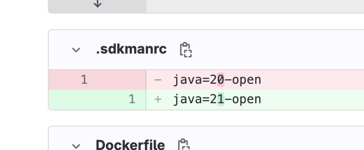 fiWith such a configuration, the environment is managed by the .sdkmanrc file in the project repo. To update everyone’s environment, all we need to do is: